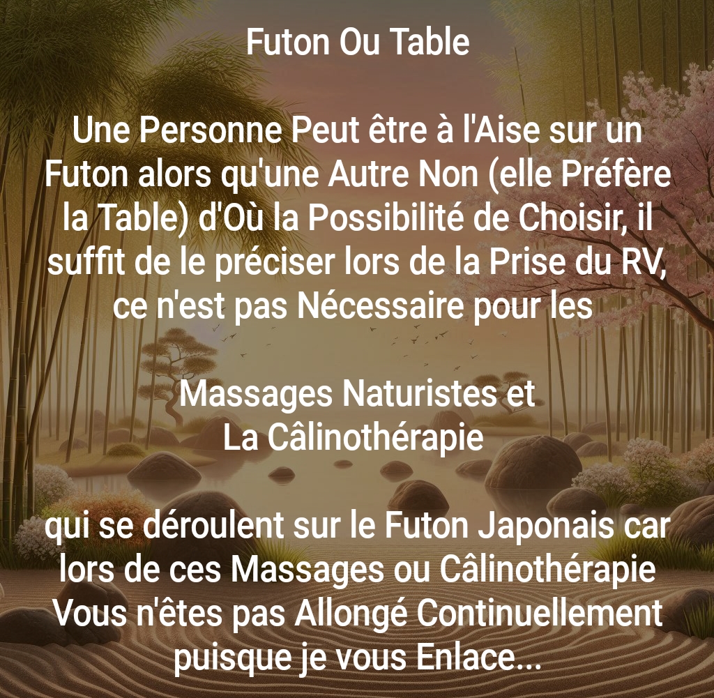 *** Nouveaux Tarifs pour les Massages Naturistes sur Futon à l'Essai en fonction des Comportements.